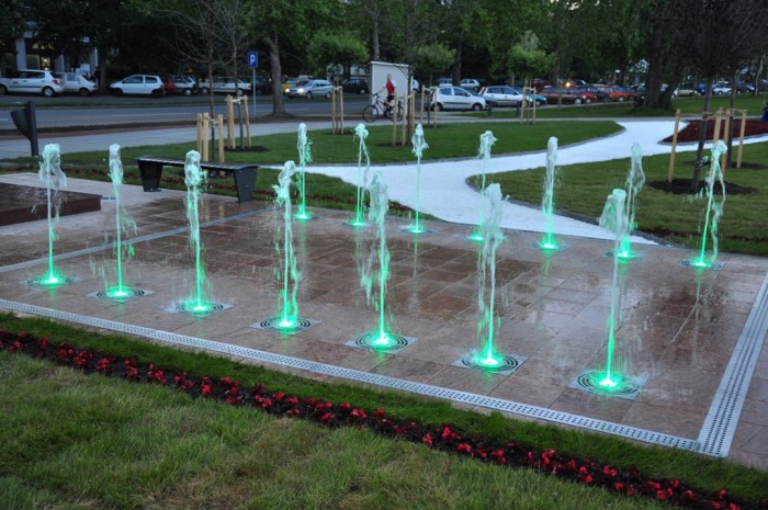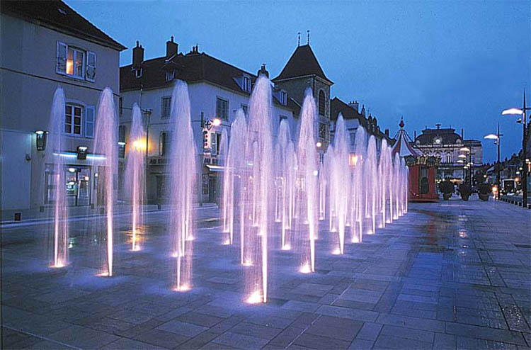 Su fıskiyeleri paslanmaz çelik kollektör sistemine monte edilir. Dalgıç pompalar vasıtasıyla kollektör sistemine su basılarak, su fıskiyelerinden suyun akışı gerçekleştirilir. Su fıskiyelerinin yanlarına LED lambalarla monte edilip görsel bütünlük sağlanır.